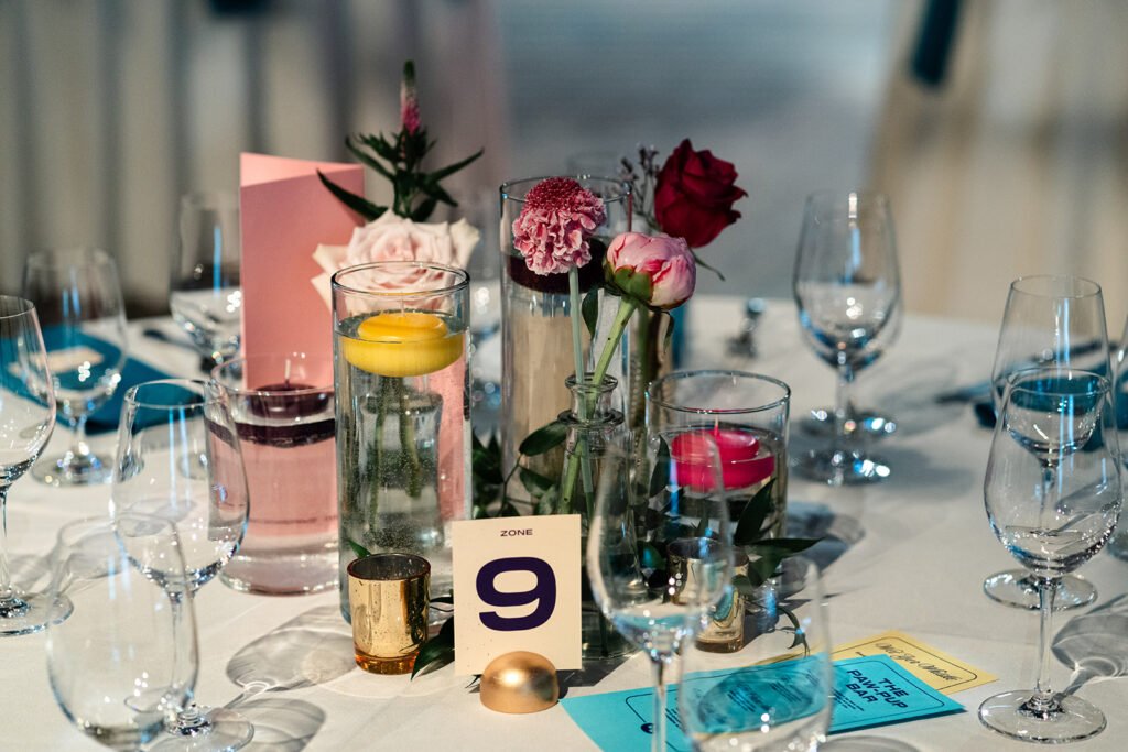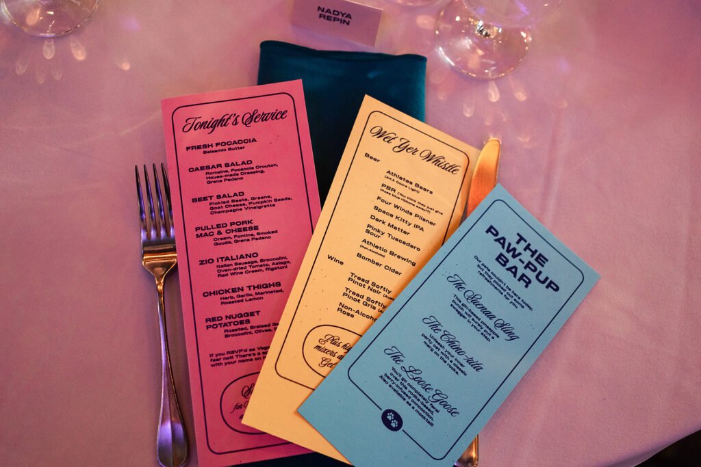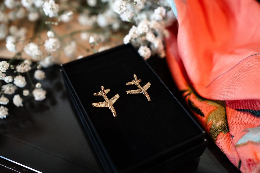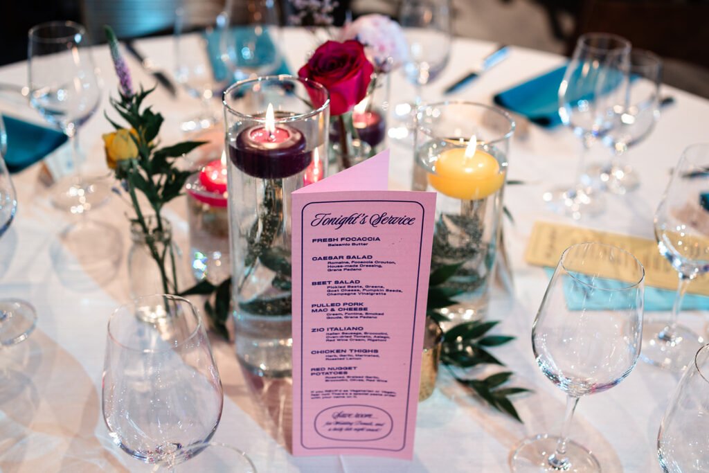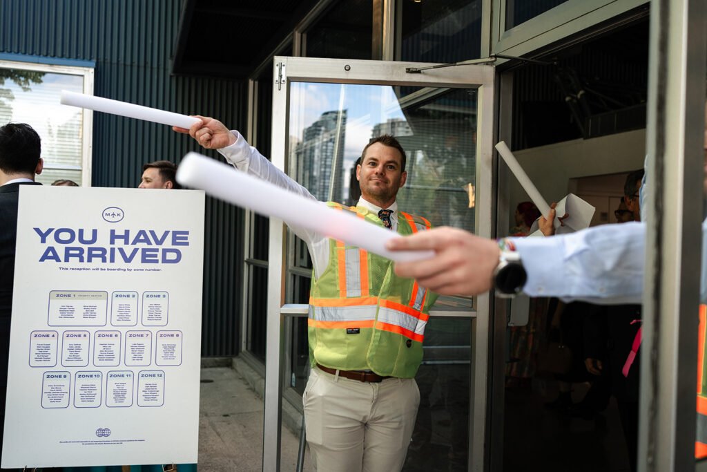 When we walked into the reception, we weren’t just attending a wedding — we were boarding a love story, lead by the bride’s brothers as airplane guides themself. Guests were greeted with airplane-style menus, cleverly designed to mirror in-flight cards but featuring signature cocktails instead of safety instructions. It was so unique and fun!